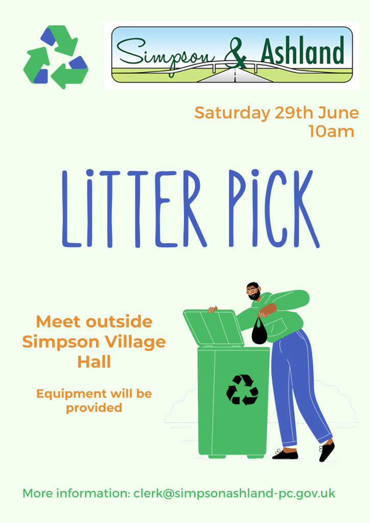 Meet outside Simpson Village Hall to litter pick around Simpson.